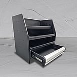 Finished in tough black textured powder coat with silver anodised drawer fronts