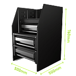 Finished in tough black textured powder coat with silver anodised drawer fronts