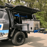 The patented Drop Slide™ is designed to provide unrestricted access to a fridge, toolbox or generator at a safe, convenient level. (MSA Fridge Slide)Using the slimline handle, the Drop Slide™ lowers 30 centimetres while extending out further over the tailgate. This happens in one safe, smooth, controlled motion. At the same time, the platform remains in a perfectly horizontal position and avoids contact with the vehicle.The unique MSA 4×4 blue anodised faceplate provides a tough, durable and easily recognisable finish. The frame is constructed from powder-coated steel and the compact design maximises storage space within the vehicle. No drawer disassembling is required to install and the pre-drilled tray holes provide anchor points for most popular fridges. A unique lock-in and lock-out safety system ensures the slide stays in its intended position.