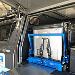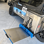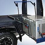 The patented Drop Slide™ is designed to provide unrestricted access to a fridge, toolbox or generator at a safe, convenient level. (MSA Fridge Slide)Using the slimline handle, the Drop Slide™ lowers 30 centimetres while extending out further over the tailgate. This happens in one safe, smooth, controlled motion. At the same time, the platform remains in a perfectly horizontal position and avoids contact with the vehicle.The unique MSA 4×4 blue anodised faceplate provides a tough, durable and easily recognisable finish. The frame is constructed from powder-coated steel and the compact design maximises storage space within the vehicle. No drawer disassembling is required to install and the pre-drilled tray holes provide anchor points for most popular fridges. A unique lock-in and lock-out safety system ensures the slide stays in its intended position.