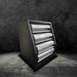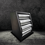 Finished in tough black textured powder coat with silver anodised drawer fronts