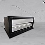 Finished in tough black textured powder coat with silver anodised drawer fronts