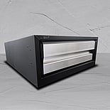 Finished in tough black textured powder coat with silver anodised drawer fronts