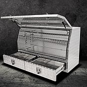 Our ¾ opening TOOLBOX RANGE IS ENGINEERED TO THE HIGHEST QUALITY WITH DESIGNS AVAILABLE IN VARIOUS CONFIGURATIONS (SOME WITH DRAWERS AND ADJUSTABLE SHELVES) FOR ADDED STORAGE SPACE AND ONSITE SECURITY. OUR AFFORDABLE AND DURABLE TA15 1450MM X 600MM X 850MM UTE TOOLBOX—PROVIDES CONVENIENT ACCESS TO TOOLS WITHOUT NEEDING TO OPEN YOUR TRAY SIDE PANELS.