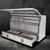 Our ¾ opening TOOLBOX RANGE IS ENGINEERED TO THE HIGHEST QUALITY WITH DESIGNS AVAILABLE IN VARIOUS CONFIGURATIONS (SOME WITH DRAWERS AND ADJUSTABLE SHELVES) FOR ADDED STORAGE SPACE AND ONSITE SECURITY. OUR AFFORDABLE AND DURABLE TA15 1450MM X 600MM X 850MM UTE TOOLBOX—PROVIDES CONVENIENT ACCESS TO TOOLS WITHOUT NEEDING TO OPEN YOUR TRAY SIDE PANELS.