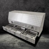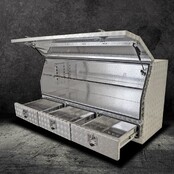 OUR ¾ OPENING TOOLBOX RANGE IS ENGINEERED TO THE HIGHEST QUALITY WITH DESIGNS AVAILABLE IN VARIOUS CONFIGURATIONS (SOME WITH DRAWERS AND ADJUSTABLE SHELVES) FOR ADDED STORAGE SPACE AND ONSITE SECURITY. OUR AFFORDABLE AND DURABLE TA15B 1750MM X 600MM X 850MM UTE TOOLBOX—PROVIDES CONVENIENT ACCESS TO TOOLS WITHOUT NEEDING TO OPEN YOUR TRAY SIDE PANELS.